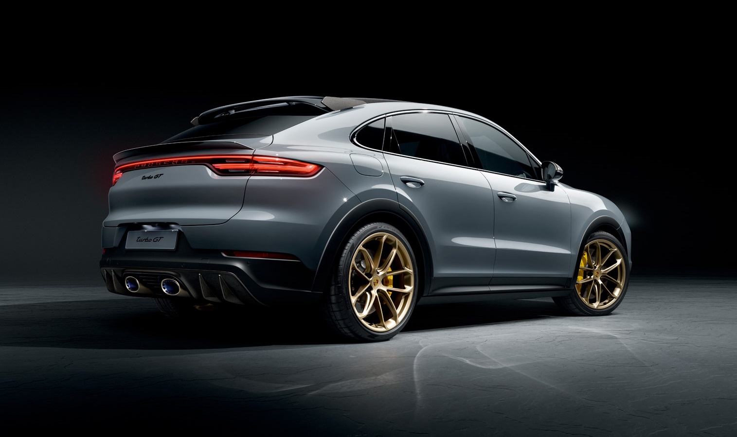 Свой статус самой спортивной модели Cayenne Turbo GT, окрашенный в новый цвет кузова Arctic Grey (опция), подчеркивает благодаря современному дизайну с особыми акцентами. Специфический передний бампер GT с характерной спойлерной кромкой и увеличенными боковыми воздухозаборниками придает автомобилю уникальный вид спереди. В виде сбоку доминируют профильная карбоновая крыша и черные расширители колесных арок вместе с 22-дюймовыми колесными дисками GT Design, окрашенными в цвет Neodyme. Специфическими для GT являются также торцевые пластины из карбона, прилегающие к боковинам спойлера на крыше, а также увеличенная на 25 миллиметров по сравнению с Turbo кромка на адаптивном заднем спойлере. При движении на максимальной скорости это увеличивает прижимную силу на величину до 40 килограммов. И эффектный завершающий штрих в виде сзади – диффузор с карбоновой накладкой.